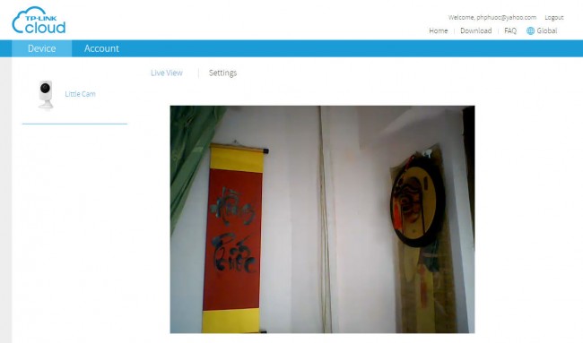 + Dùng thiết bị smartphone hay tablet. Trước hết, bạn phải vào App Store (iOS) hay Google Play (Android) để tải ứng dụng tpCamera về cài đặt trên thiết bị của mình. Sau đó, dùng cáp LAN (có kèm theo camera) kết nối camera với router rồi cấp nguồn điện cho camera. Khi đèn LED màu xanh lục ở phía trước camera sáng ổn định (không còn chớp nữa), camera đã được kết nối vào hệ thống. Bạn mở ứng dụng tpCamera lên. Đăng nhập vào tài khoản TP-LINK của mình (nếu chưa có thì bạn phải đăng ký tạo mới). Vậy là bạn đã có thể xem Live View những gì camera đang ghi.