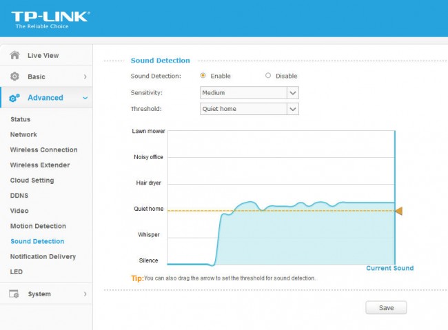 Các camera có tính năng phát hiện chuyển động (Motion Detection) và phát hiện âm thanh (Sound Detection). Hai chức năng này được TP-LINK ứng dụng tiện lợi hơn nhiều hãng khác là cho phép bạn chọn khu vực để hễ có vật gì chuyển động ở đó là camera báo động hay cường độ âm thanh tới mức nào thì camera báo động. Hình thức báo động cho bạn có 2 tùy chọn: qua e-mail gửi tới bạn hay qua FTP server.