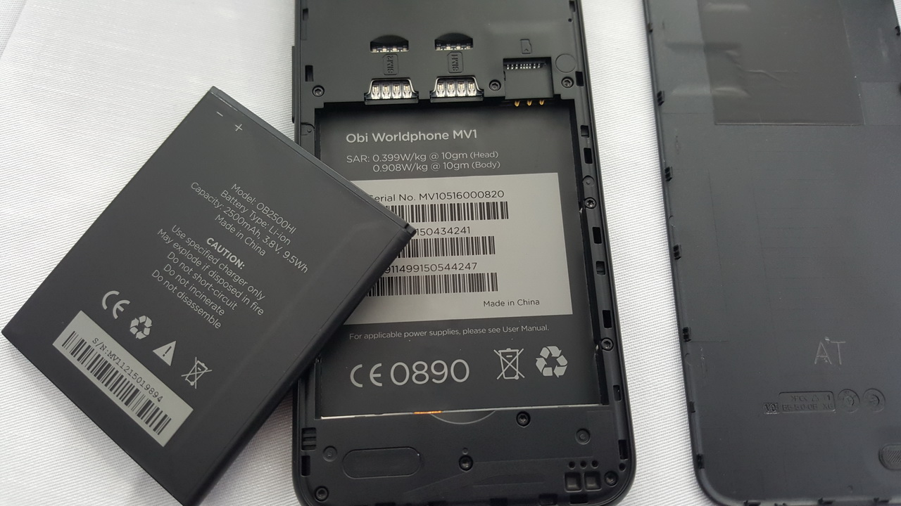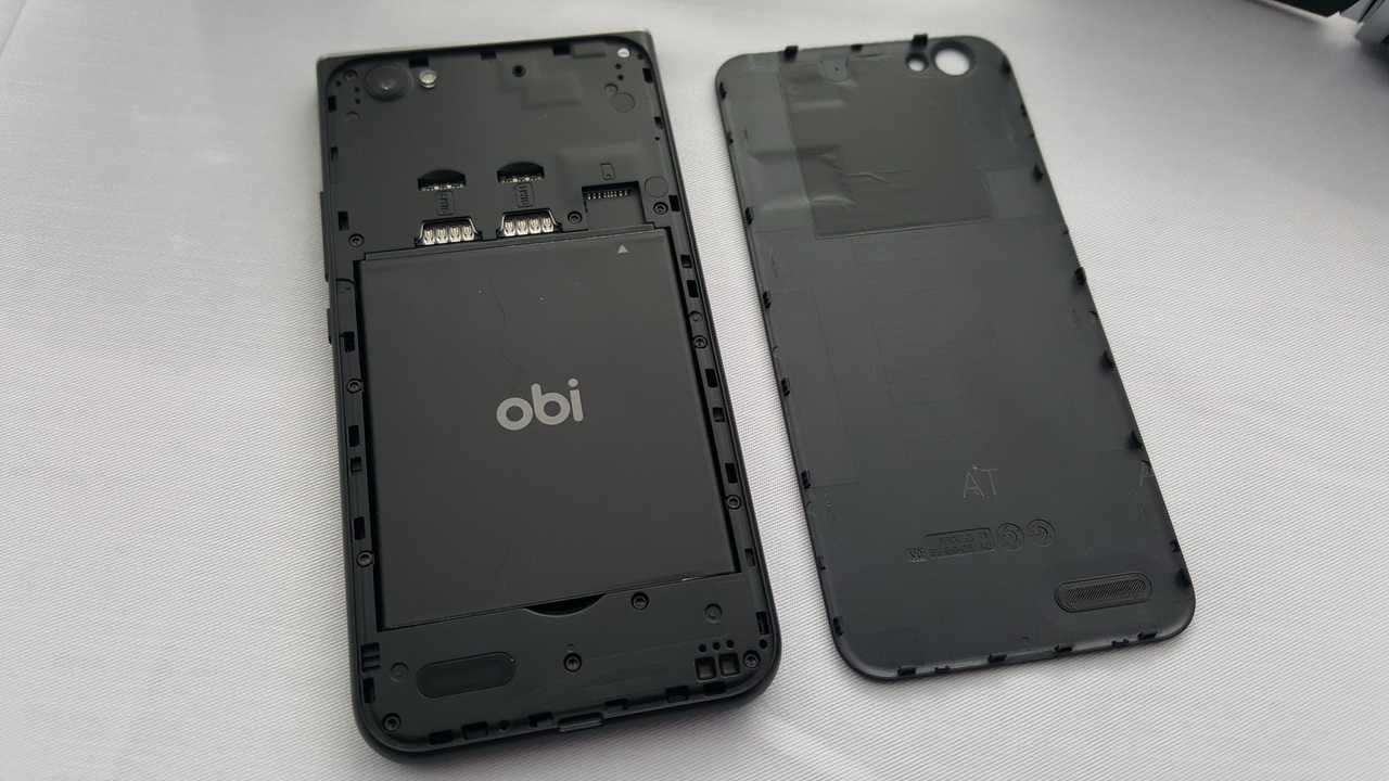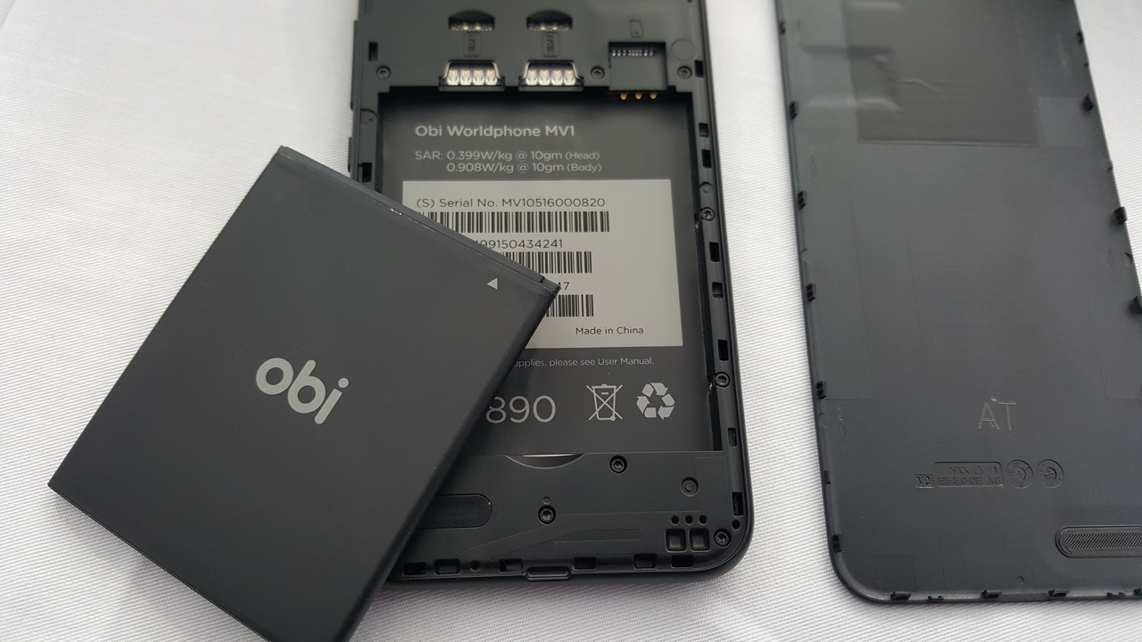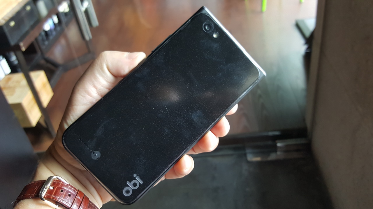 Obi MV1 vỏ nhựa polycarbonate có thể tháo rời nắp lưng có thiết kế bất đối xứng đặc trưng của Obi Worldphone với khung kim loại cứng cáp, góc cạnh phần trên và bo tròn xuống dưới. Nó được trang bị CPU Qualcomm Snapdragon 212 quad-core 1.3GHz, GPU Adreno 304; RAM 2GB, ROM 16GB, hỗ trợ thẻ nhớ 64GB. Nó có màn hình 5 inch IPS HD 720 x 1280 pixel, thiết kế độc đáo nổi lên trên thân máy (floating display), góc nhìn rộng hơn và màu sắc hiển thị tốt hơn, kính cường lực Corning Gorilla Glass 3, có tráng lớp chống dính vân tay Oleophobic Coating, tính năng hiển thị rõ dưới ánh nắng Sunlight Display. Camera sau 8MP và camera trước 2MP. Hệ thống âm thanh vòm DTS Audio Sound, AudioFX 24-bit high-res lossless audio với bass boost, surround, reverb (hồi âm), và có 13 cấu hình âm thanh thiết đặt sẵn. Microphone kép để chống ồn và nhiễu. Mạng 4G LTE, Dual-SIM (dạng micro SIM).