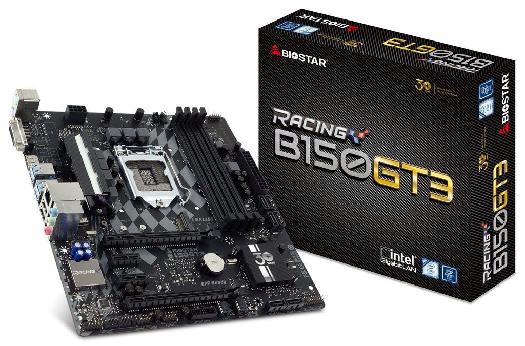 Hãng Biostar (Taiwan) ngày 27-5-2016 đã giới thiệu sản phẩm mớn nhất trong dòng bo mạch chủ (motherboard) Racing Series là Biostar Racing B150GT3. Đây là phiên bản đặc biệt Special Edition kỷ niệm sinh nhật thứ 30 của hãng Biostar. Trên heatsink có in logo ” Biostar 30 Years” và trên hộp có tên GT3 màu vàng kim.