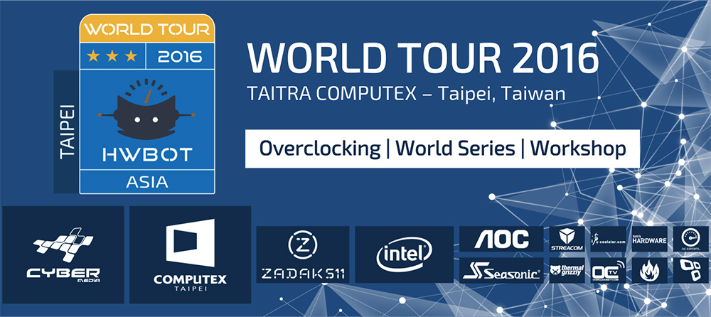 Cuộc thi ép xung (overclocking) HWBOT World Tour Asia 2016 vòng COMPUTEX Taipei 2016 do HWBOT tổ chức đã khởi tranh từ 12 giờ trưa ngày 31-5-2016, tức ngày khai mạc triển lãm thường niên về công nghệ điện toán lớn nhất châu Á tại Taipei (Đài Loan). Các trận đấu vòng loại diễn ra trong 4 ngày, từ 31-5 tới 3-6 để chọn ra 4 đấu thủ vào tranh bán kết rồi chung kết vào ngày 4-6-2016.