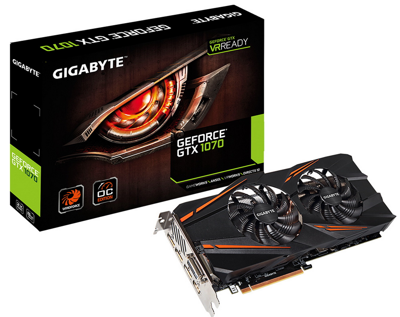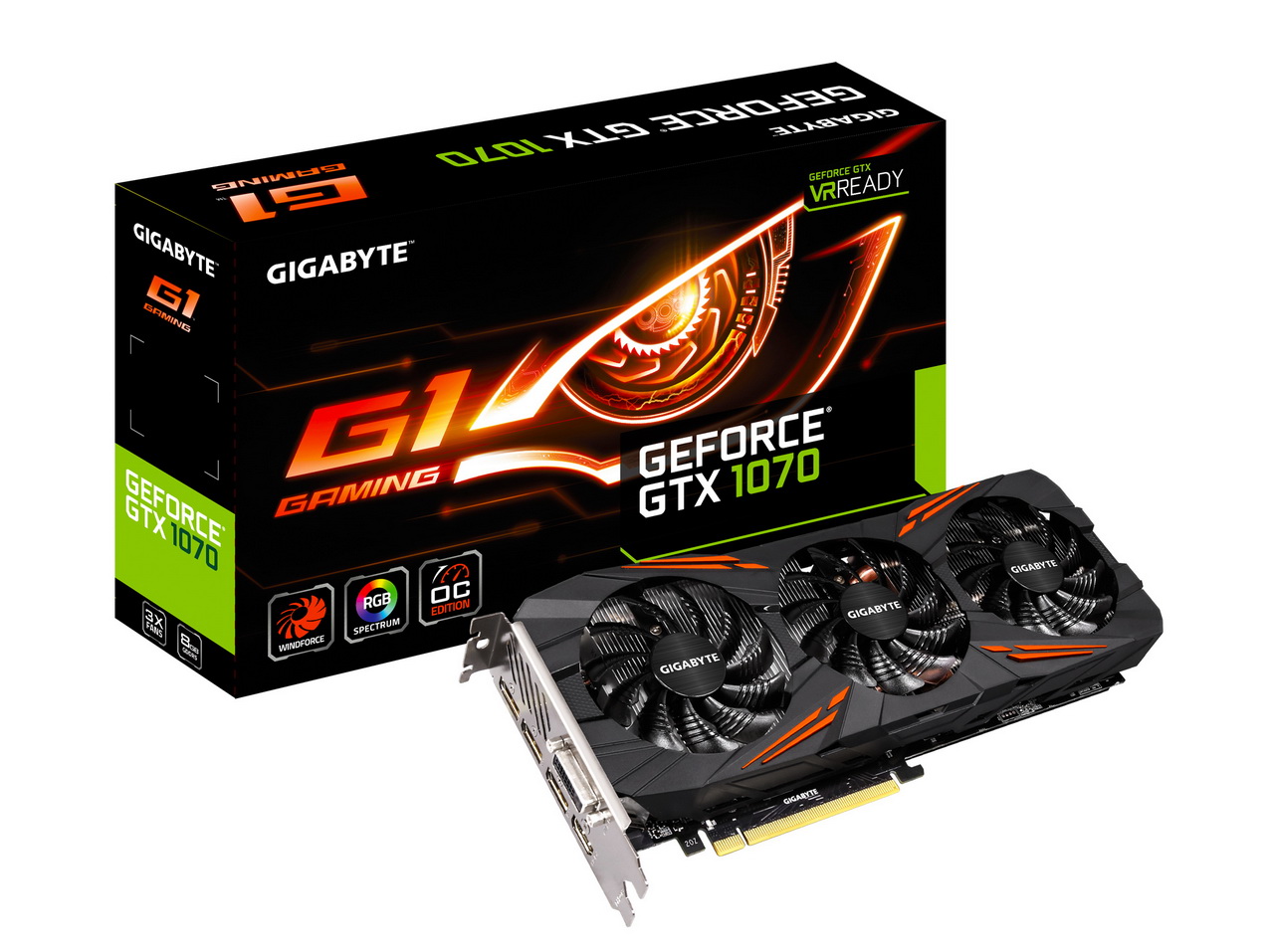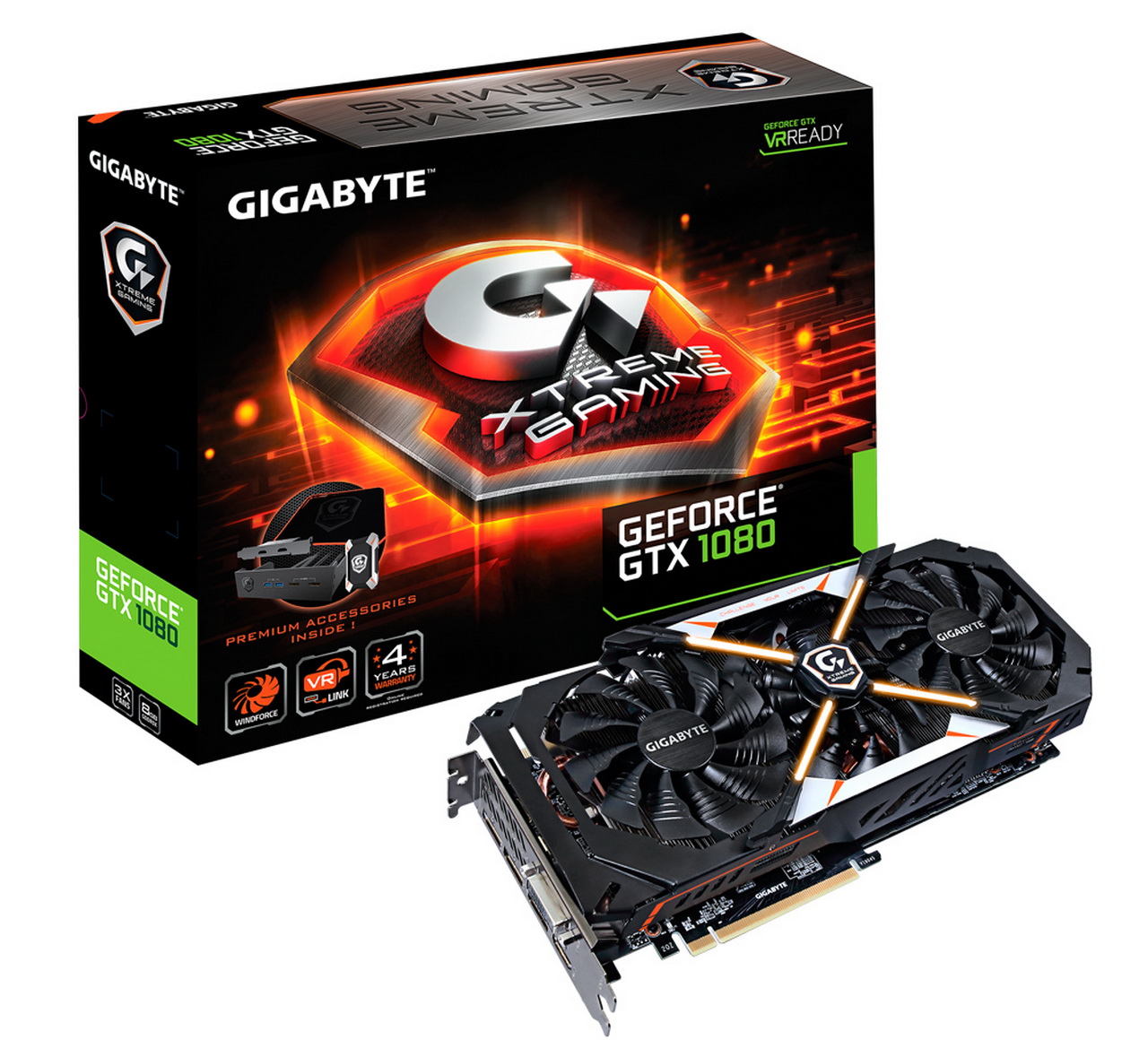 Hãng GIGABYTE (Taiwan) vừa chính thức giới thiệu một loạt card đồ họa sử dụng GPU kiến trúc độ họa Pascal mới của NVIDIA, bao gồm GV-N1080XTREME-8GD Premium Pack, GV-N1080G1 GAMING-8GD, GV-N1070G1 GAMING-8GD và GV-N1070WF2OC-8GD. Tất cả các card đồ họa này đều được GIGABYTE tùy biến lại từ phiên bản tham chiếu gốc của NVIDIA theo thiết kế riêng của GIGABYTE với nhiều thay đổi về mức xung nhịp, công nghệ tích hợp và hình thức bên ngoài nhằm mang đến hiệu năng tốt nhất cho người dùng. Chẳng hạn như GPU tích hợp được tuyển lựa theo qui trình GPU Gauntlet nhằm mang đến hiệu quả ép xung cao, hệ thống tản nhiệt hoàn toàn mới WindForce Stack 3X trên dòng sản phẩm Xtreme có độ ồn rất thấp, nhưng hiệu quả làm mát cao kết hợp với dải đèn LED RGB tùy biến được.