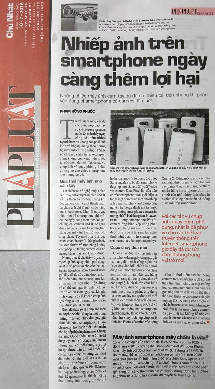 Từ vài năm nay, khi dự các cuộc họp báo hay sự kiện ở trong và ngoài nước, tôi nhìn thấy ngày càng có thêm nhiều người tham dự không còn phải lỉnh kỉnh và khệ nệ mang theo những bộ máy ảnh chuyên nghiệp DSLR nữa. Ngay cả máy ảnh du lịch compact cũng không. Tất cả tác vụ chụp ảnh và quay phim giờ đây được họ giao cho chiếc smartphone nhỏ nhưng có võ.