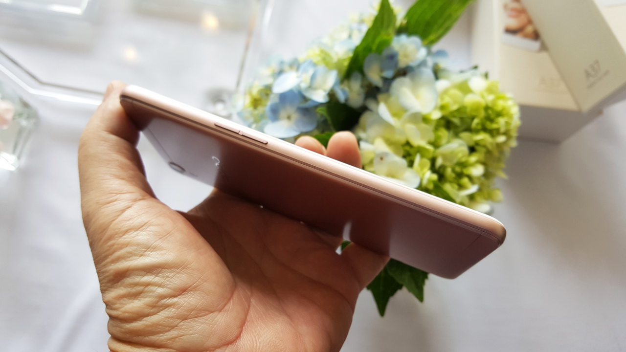 A37 có trọng lượng 136g (đã bao gồm pin), các cạnh máy được bo tròn tinh tế sẽ cho cảm giác chắc chắn, êm khi cầm trên tay.