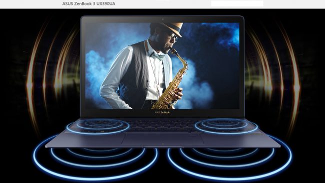 Hệ thống âm thanh của ZenBook 3 là công nghệ âm thanh ASUS SonicMaster thế hệ mới được phát triển với sự hợp tác của êkip ASUS Golden Ear và các chuyên gia âm thanh của hãng loa nổi tiếng Harman Kardon. Tuy kích thước chỉ 12.5 inch, laptop ZenBook 3 được trang bị tới 4 loa đẳng cấp Harman Kardon loại 5 nam châm với amplifier AMP 4 kênh thông minh, hiệu ứng surround ảo 5.1 kênh cho âm thanh surround 360 độ thật sự, không bị méo tiếng và có chất lượng như trong rạp chiếu phim.