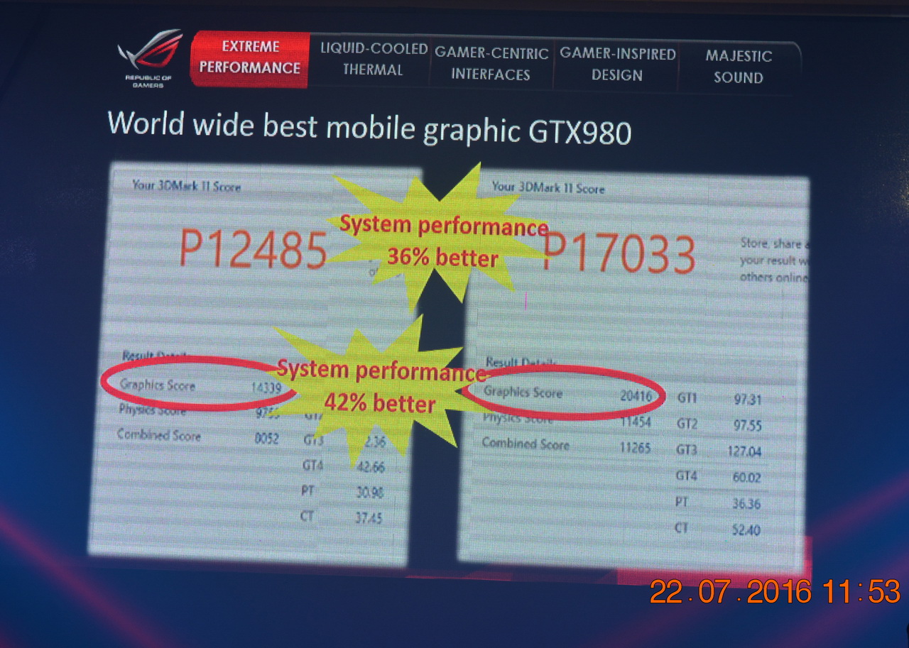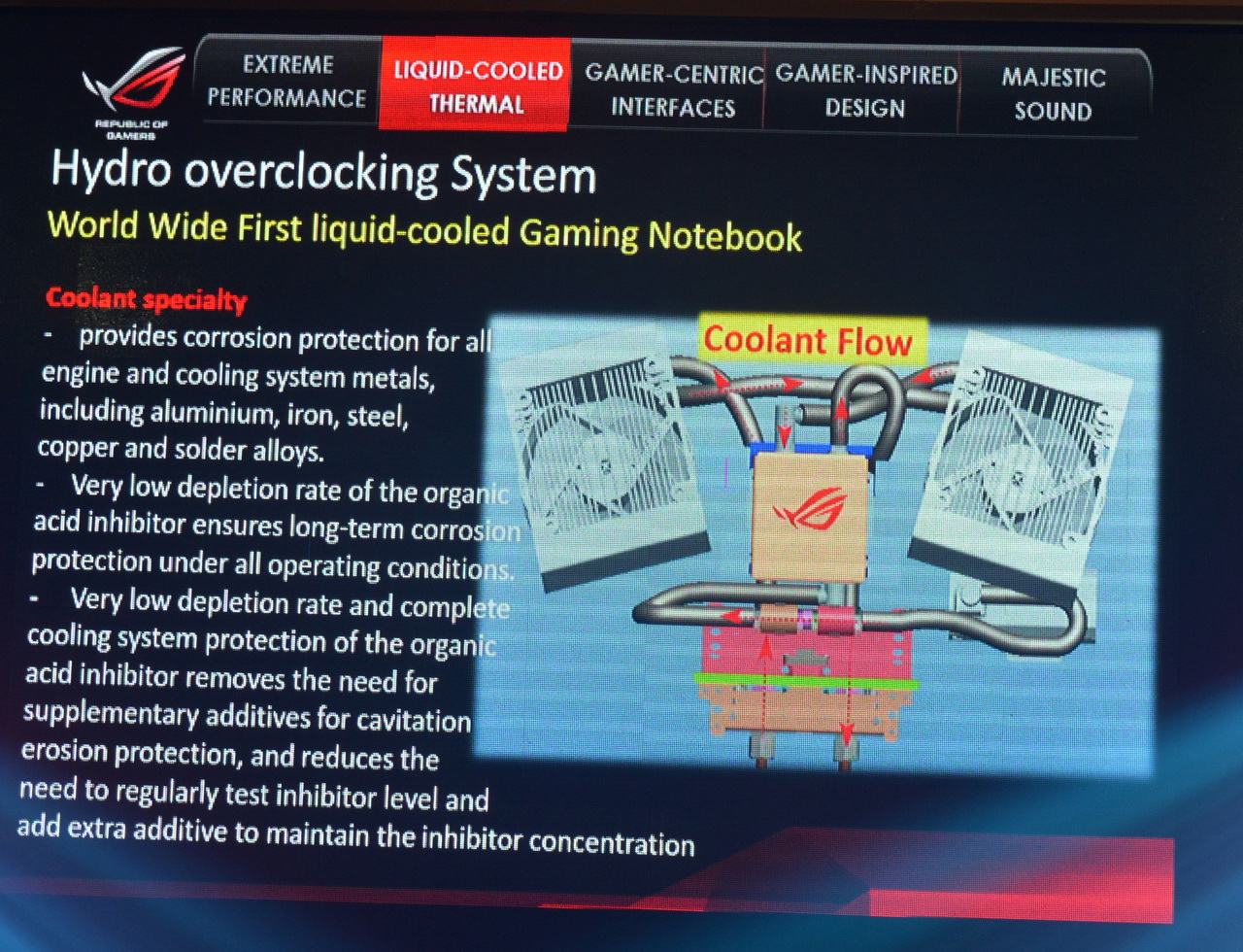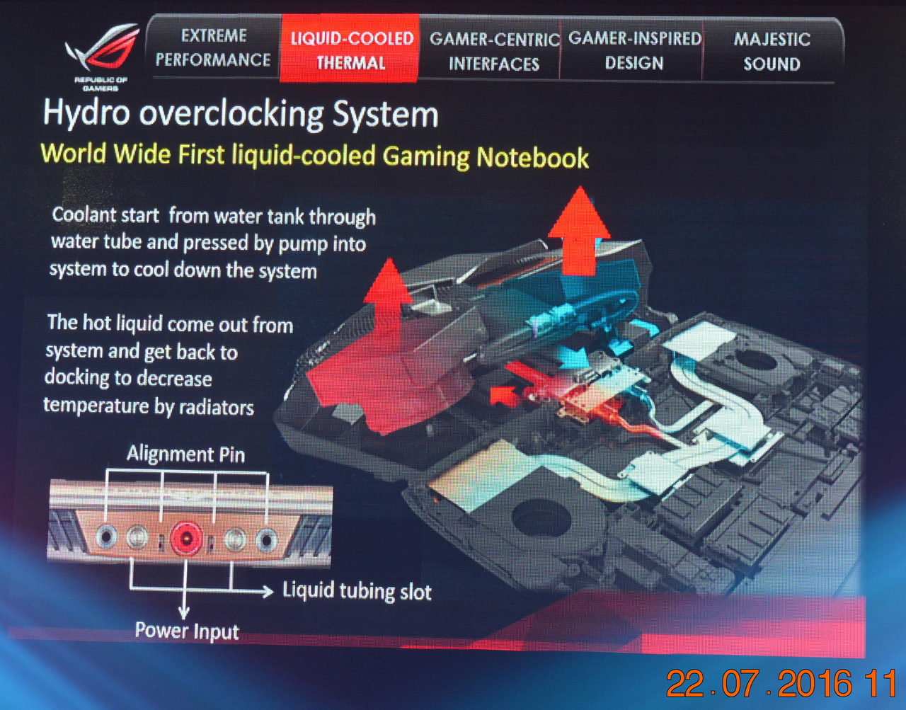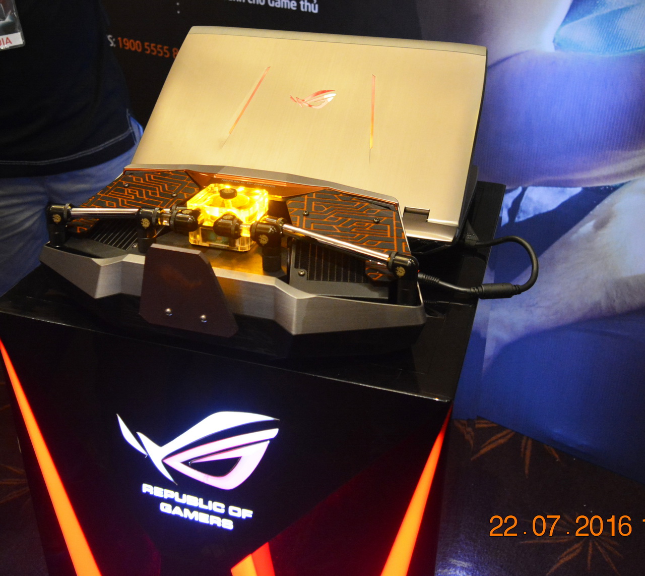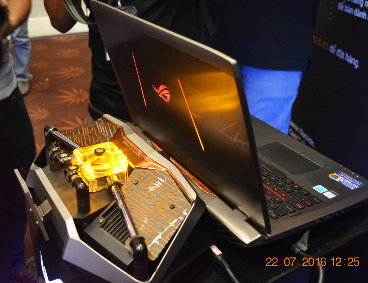 Chiếc máy tính xách tay “siêu khủng” ROG GTX700 hỗ trợ công nghệ tản nhiệt nước đầu tiên trên thế giới đã được ASUS Việt Nam giới thiệu cho game thủ và giới mê công nghệ ở TP.HCM sáng 22-7-2016. Thiết bị thuộc gia đình chuyên game ASUS Republic of Gamers (ROG) này hỗ trợ hệ thống tản nhiệt nước tháo rời độc quyền – Hydro Overclocking System. Nó có màn hình có độ phân giải UHD 4K, chạy bộ vi xử lý Intel mobile K-SKU (vi kiến trúc Skylake) – tức Intel Core thế hệ thứ 6, và card đồ họa NVIDIA GeForce GTX 980.