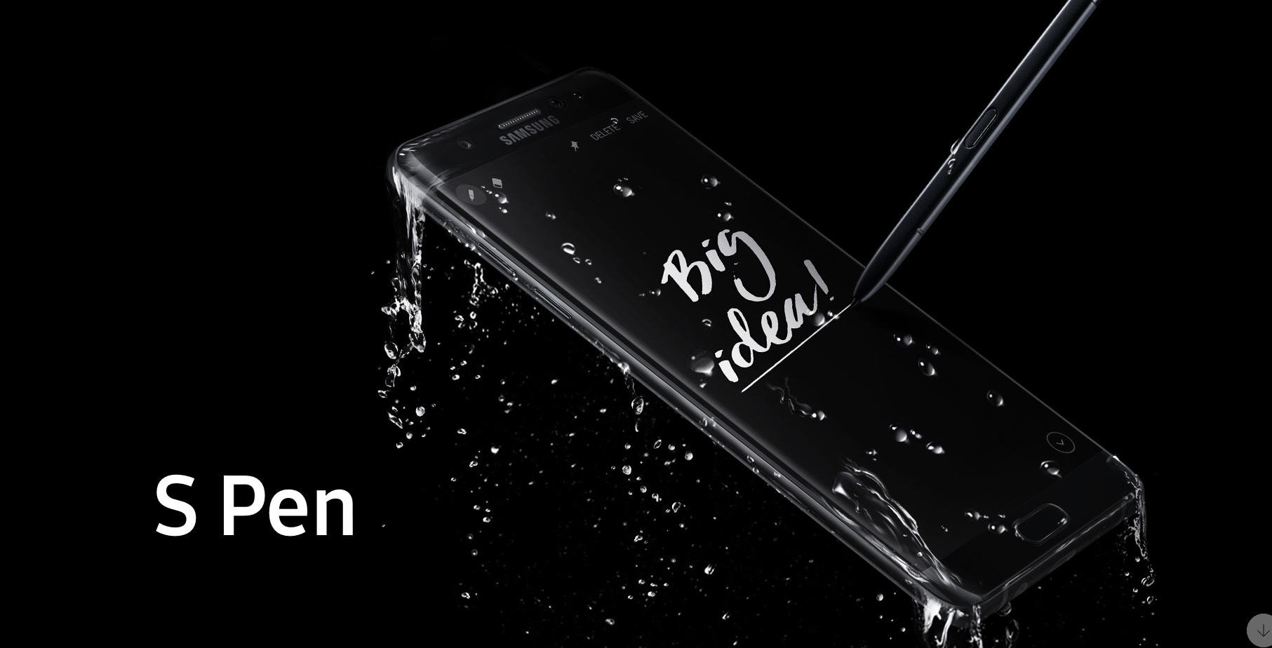 Chiếc bút S Pen vốn là linh hồn và đặc điểm nhận diện của dòng Galaxy Note. Ở Note7, S Pen được trang bị nhiều cải tiến mới, không chỉ là một cây viết đơn thuần, mà còn là công cụ để người dùng có thể làm được nhiều thứ hơn và trải nghiệm cuộc sống nhiều hơn nữa. Người dùng có thể ghi lại ngay những ý tưởng đầy cảm hứng từ những khoảnh khắc trong cuộc sống bằng việc sử dụng chức năng ghi chú trên màn hình khóa (Sceen off memo), và lưu các ghi chú này ngay trên màn hình luôn hiển thị (Always On) thay vì phải mở khóa màn hình. Bút S Pen cũng cho phép người dùng dễ dàng tạo ra và chia sẻ hình ảnh động (GIF) đầy chất sáng tạo thông qua chức năng Smart Select. Trong khi đó, giao diện Air Command được làm mới, đi kèm 2 tính năng Magnify và Translate giúp người dùng dễ dàng phóng to trên màn hình hoặc chuyển đổi ngôn ngữ chỉ đơn giản bằng việc giữ và rê bút S Pen. Người dùng cũng dễ dàng tận dụng được hết các tính năng đáng giá của S Pen với Samsung Notes, nơi tích hợp tất cả các công cụ từ ghi chú, phác thảo đến chỉnh sửa ghi chú.