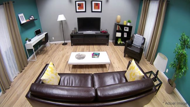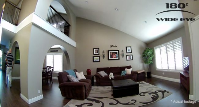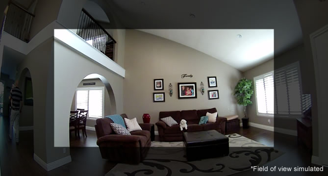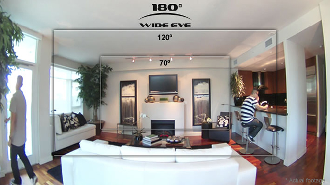 Trở lại với D-Link DCS-2630L, góc nhìn 180 độ cho phép camera thu gọn trong một khung ảnh mọi chi tiết của một nửa môi trường lắp đặt. Có thể nói rằng camera ghi được cả các hình ảnh ở vị trí ngang mép camera. Khả năng này lợi hại hơn là ở tính năng xuay quanh trục vì camera chỉ có thể ghi được chi tiết trong tầm nhìn mà nó đang xoay về, bỏ trống khoảng không gian còn lại.