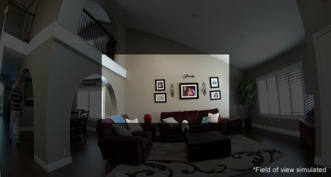 Ở đây, chúng ta cần lưu ý, đây là góc nhìn (angle of view) mà ống kính cố định có thể đạt được. Nó khác với tầm nhìn (field of view) mà thiết bị có thể ghi được. Với các camera bình thường, để có tầm nhìn rộng, nhà sản xuất phải dùng thiết kế chuyển động quanh trục để điều khiển camera quét ngang từ trái qua phải (pan) hay quét dọc từ dưới lên trên (tilt). D-Link có nhiều mẫu camera an ninh thuộc dòng Pan and Tilt như vậy (DCS-5020L, DCS-5222L, DCS-5029L,…) Chẳng hạn chiếc DCS-5222L có góc nhìn ngang 66,2 độ và có khả năng quay để quét 170 độ sang trái hay phải để đạt được trường nhìn tổng cộng tới 340 độ.