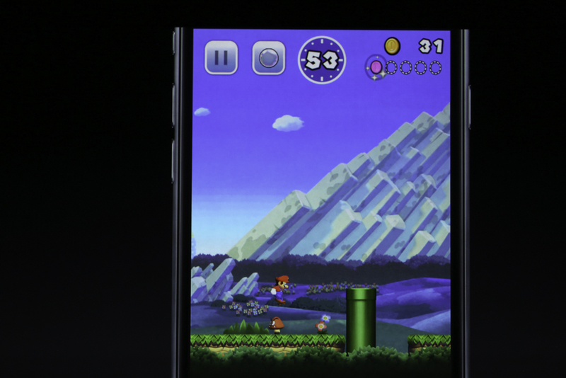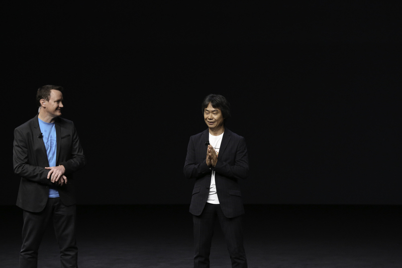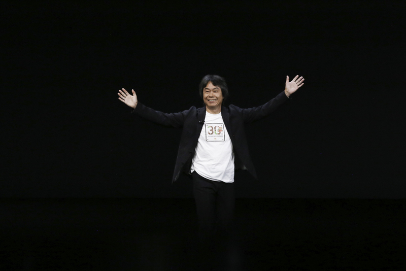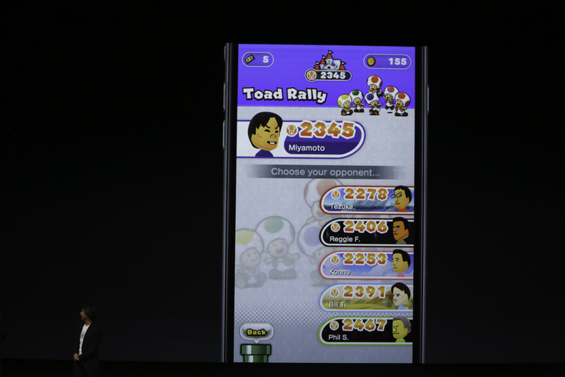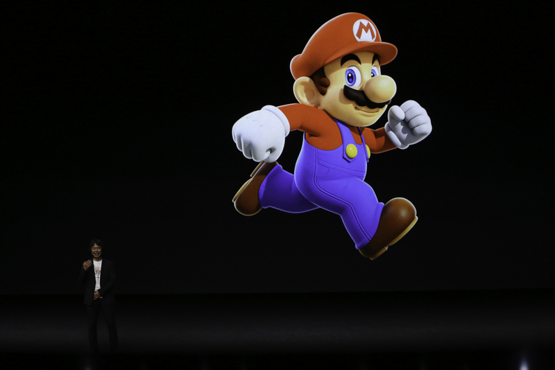 Shigeru Miyamoto xuất hiện trên sân khấu và giới thiệi về game Super Mario Run là một game iOS mới.