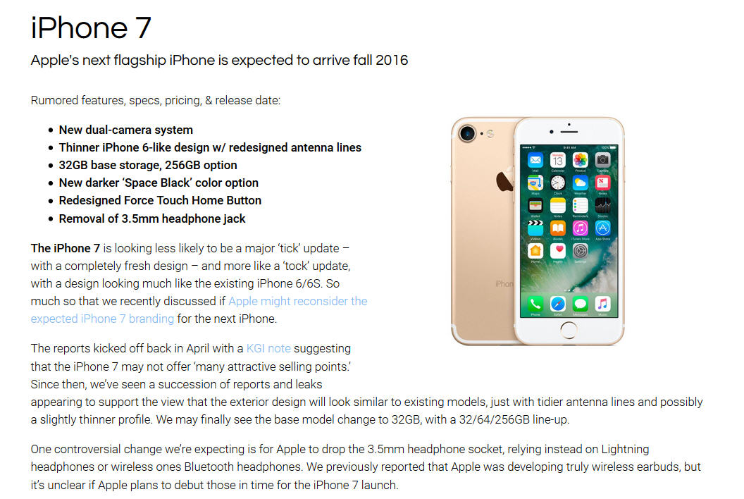 Ngay trước lúc Apple ra mắt iPhone 7, hình ảnh và thông số được nói là theo tin đồn của smartphone mới này đã có trên trang 9TO5Mac.