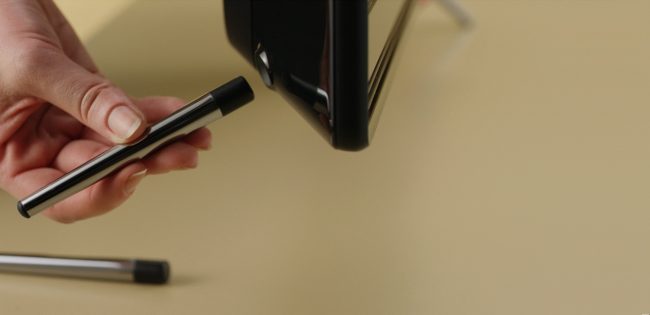 Trong khi tối giản hóa màn hình, loại bỏ mọi chi tiết thừa thãi để không làm người xem phải phân tâm khi thưởng thức những gì hiển thị trên màn hình, các nhà thiết kế Samsung lại chăm chút kỹ lưỡng cho bộ chân rời bằng kim loại có kiểu dáng tinh tế và đẹp. Ngày nay, sự phát triển của công nghệ tấm nền giúp cho màn hình TV mỏng và nhẹ hơn bao giờ hết. Vì thế không cần phải dùng tới cái chân đế TV to đùng mà cho dù khéo léo thiết kế, tạo dáng ra sao vẫn không thể làm bay hết cái nét thô thô. Từ chân đế (stand), TV Samsung đã chuyển sang dùng chân đứng (leg). Với 2 cặp chân 1 dài 1 ngắn, người dùng có thể tùy chọn gắn chân nào ở trước, chân nào phía sau để màn hình TV có thể hướng ngang hay hướng lên phù hợp với vị trí và không gian đặt để.