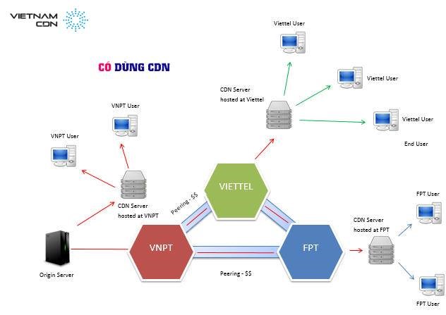 Theo Liên minh VietnamCDN (thành lập từ năm 2013), dịch vụ Vietnam CDN sẽ mang lại cho người truy cập cảm nhận sự khác biệt về tốc độ truy cập vào website của doanh nghiệp ở Việt Nam dù đối tượng truy cập ở bất kỳ vị trí địa lý nào trên thế giới. Hệ thống CDN rộng lớn với hơn 188 POP quốc tế thuộc 113 thành phố trên khắp 43 quốc gia và 11 POP trong nước trải rộng khắp 2 miền (có 2 đầu mối Hà Nội và TP.HCM) với các nhà mạng Internet lớn của Việt Nam như VNPT, Viettel, FPT, NetNam.