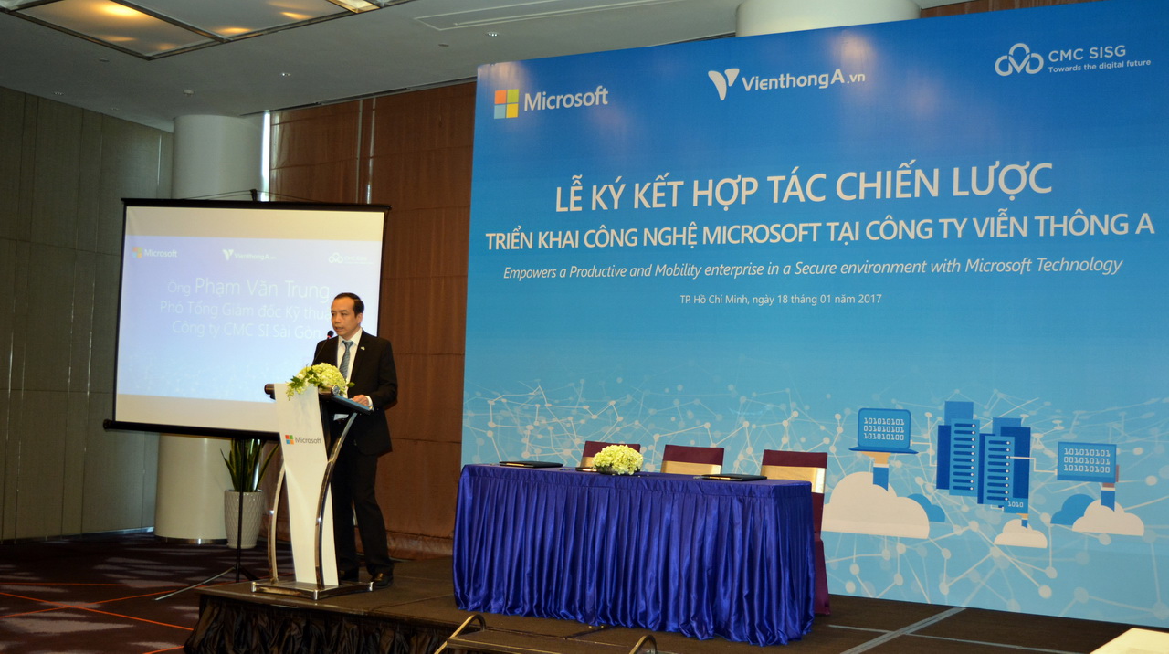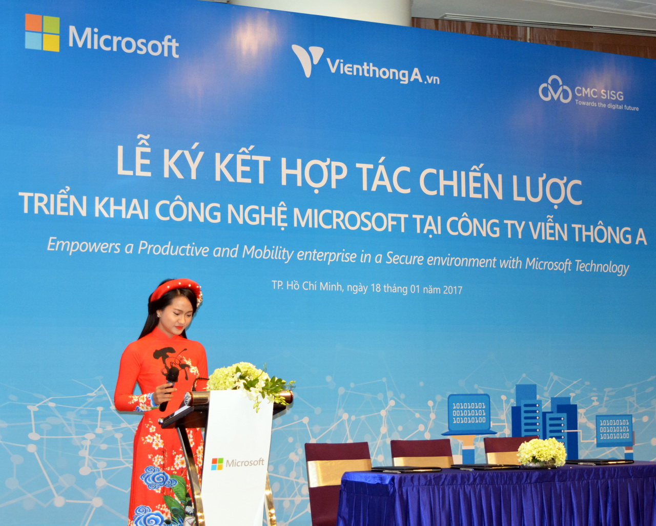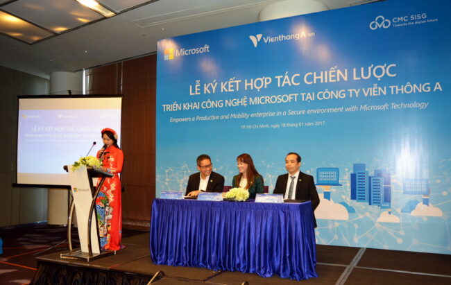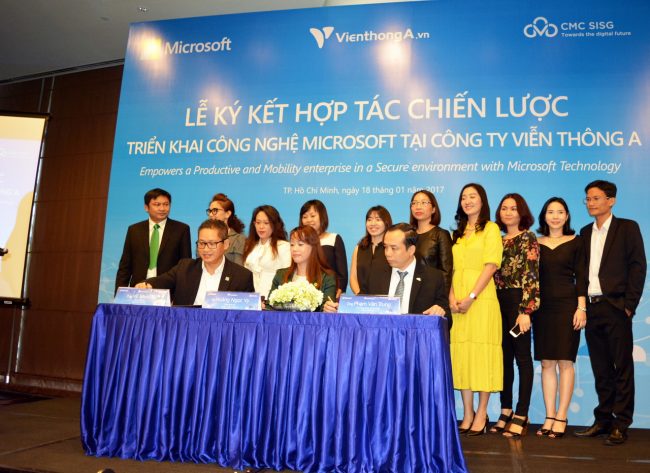 Công ty Viễn Thông A sáng 18-1-2017 tại TP.HCM đã ký kết với hai công ty Microsoft và CMC thỏa thuận hợp tác nhằm triển khai công nghệ Microsoft, thúc đẩy quá trình tư vấn, cung cấp và triển khai dịch vụ bán hàng và chăm sóc khách hàng tại Viễn Thông A. Sự kiện này được đánh giá là một bước tiến quan trọng, củng cố cam kết của Viễn Thông A trong nỗ lực luôn mang lại những lợi ích công nghệ thiết thực kèm dịch vụ chất lượng cao tới khách hàng trong nước.
