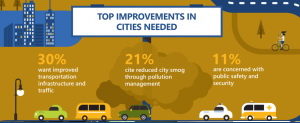 Giao thông vận tải đứng đầu danh sách các vấn đề cần cải thiện tại khắp các thành phố ở châu Á – Thái Bình Dương theo một cuộc khảo sát của Microsoft. 7 trên 10 người được hỏi tin rằng công nghệ là một chất xúc tác cho các điều kiện sống tốt hơn.