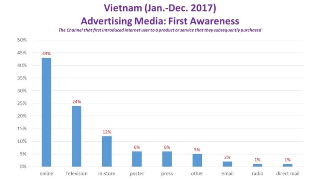 Anh bạn Dennis Chou, sếp của Công ty truyền thông sự kiện Image Media (Taiwan), vừa chia sẻ biểu đồ về tính hiệu quả của quảng cáo trên các phương tiện truyền thông ở Việt Nam trong năm 2017.