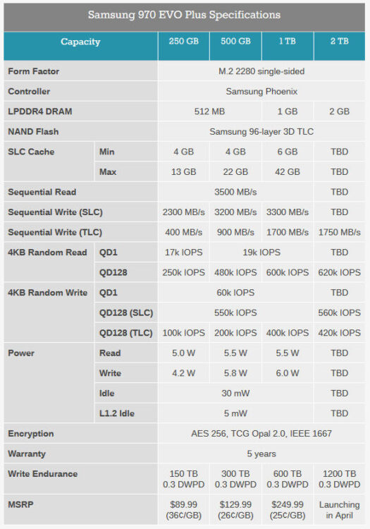 Công ty Điện tử Samsung (Hàn Quốc) ngày 23-1-2019 đã giới thiệu Samsung 970 EVO Plus, sản phẩm mới với những cải tiến cho dòng sản phẩm ổ cứng thể rắn SSD có giao diện NVMe (Non-Volatile Memory Express – bộ nhớ bất biến tốc hành). Với hiệu năng được đánh giá là ở hàng dẫn đầu ngành và dung lượng lên tới hai terabyte, dòng SSD 970 EVO Plus của Samsung cho phép các chuyên gia CNTT, những người đam mê công nghệ và game thủ xử lý khối lượng công việc lớn trên máy tính một cách dễ dàng hơn.