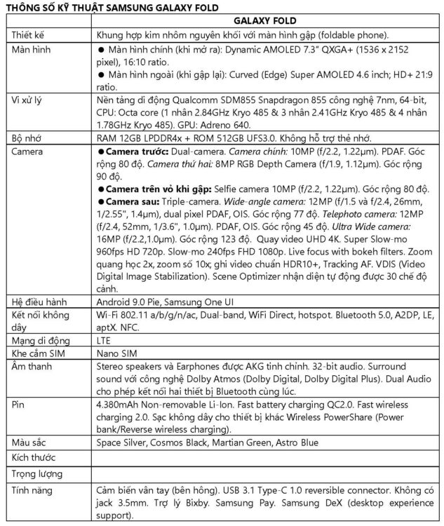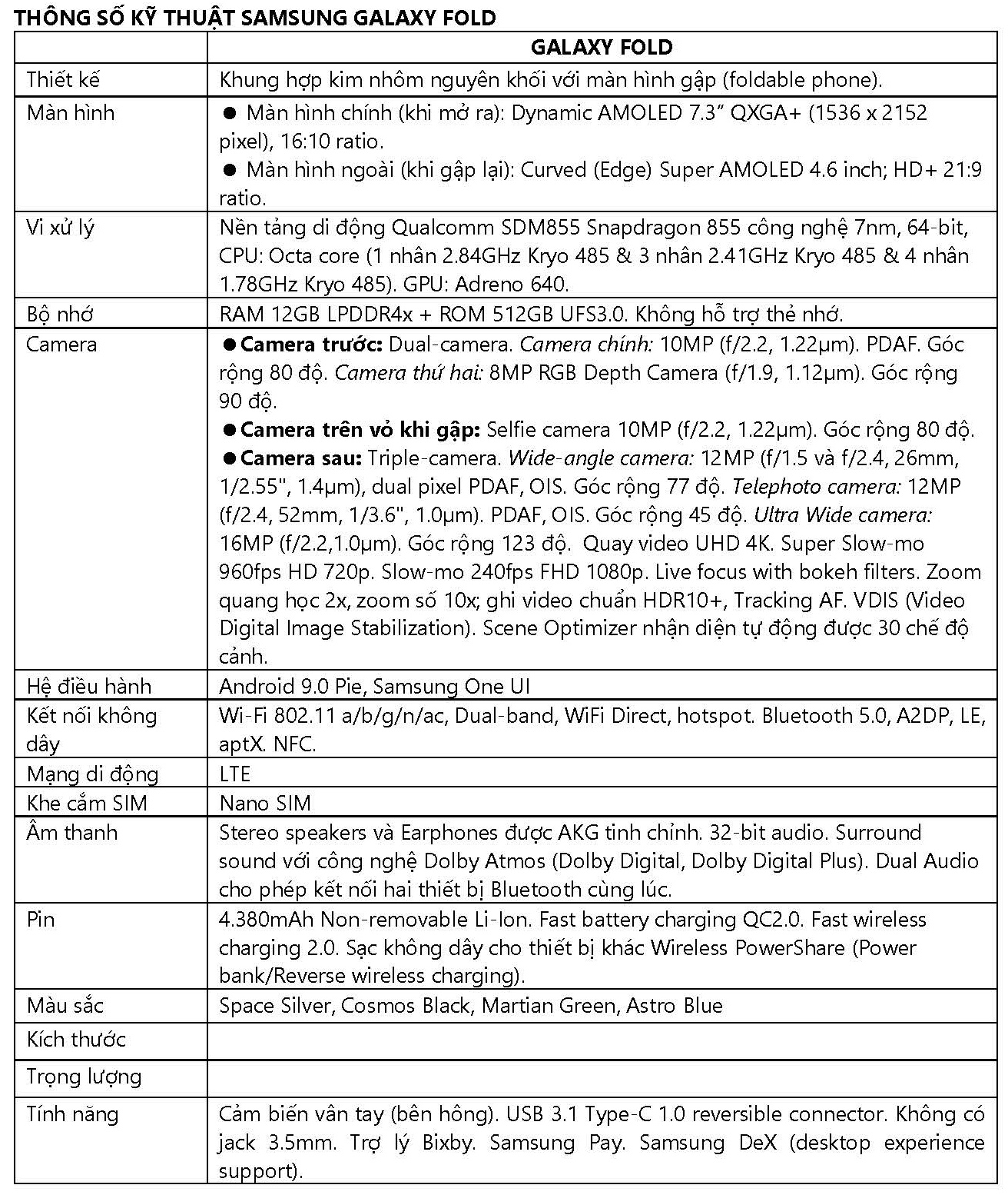 Thông tin chi tiết về Samsung Galaxy Fold.