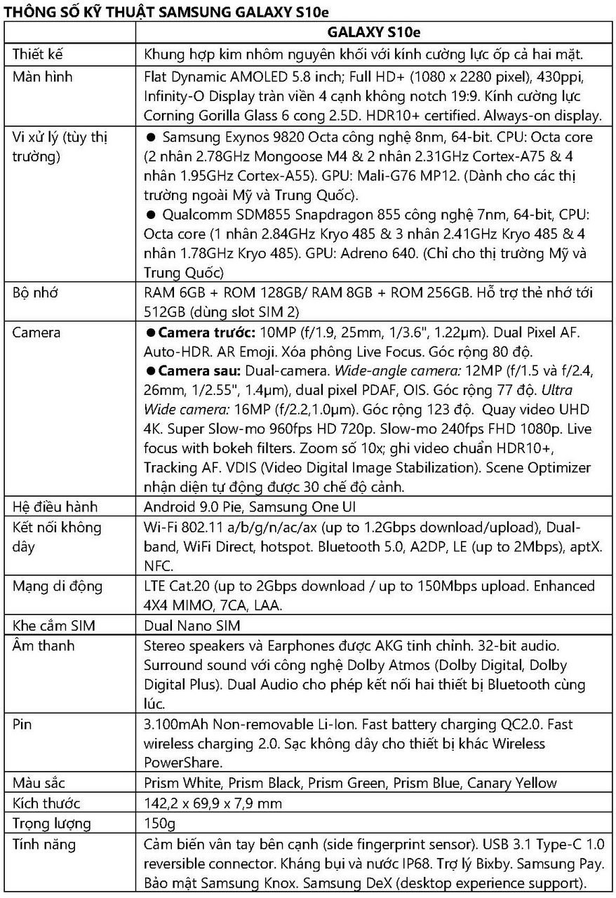 Samsung Electronics cho biết: Là một minh chứng cho 10 năm kiến tạo những điều không thể, Galaxy S10 được thiết kế cho những ai mong muốn sở hữu một chiếc điện thoại thông minh cao cấp với hiệu năng mạnh mẽ, cũng như đặt nền tảng cho kỷ nguyên trải nghiệm di động tiếp theo. Dành cho người dùng đang tìm kiếm một thiết bị vượt trội, mọi trải nghiệm trên Galaxy S10+, từ màn hình, camera, cho đến hiệu năng, đều được nâng lên một tầm cao mới. Galaxy S10e sẽ phù hợp với những ai thích cầm trên tay chiếc smartphone cao cấp với mọi tính năng được gói gọn trên màn hình phẳng quen thuộc. Cuối cùng, đối với những ai muốn thách thức giới hạn, sẵn sàng đón nhận những tính năng mạnh mẽ nhất đi kèm với tốc độ nhanh nhất hiện nay thì Galaxy S10 5G chính là sự lựa chọn tuyệt vời. Được trang bị màn hình với công nghệ tấm nền Dynamic AMOLED hoàn toàn mới, thế hệ camera tiên tiến nhất và khả năng xử lý thông minh, dòng sản phẩm Galaxy S10 mang đến cho người dùng nhiều sự lựa chọn hơn, tạo ra những chuẩn mực điện thoại thông minh mới.