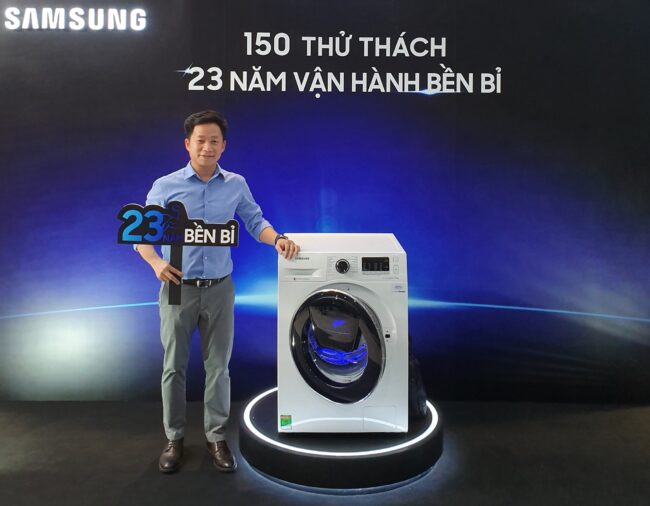 Samsung cho biết: Luôn giữ vững cam kết: Hướng đến công nghệ, tập trung vào chất lượng, những chiếc máy giặt của Samsung luôn được nghiên cứu và sản xuất bởi những công nghệ mới nhất và những kỹ thuật xuất sắc. Chất lượng đỉnh cao của những chiếc máy giặt Samsung đã được chứng minh qua hơn 150 bài lab test trong phòng thí nghiệm, trước khi được đưa vào sản xuất và nhờ vậy máy giặt về lý thuyết có thể hoạt động bền bỉ suốt 23 năm. Tính bền bỉ này đã được Hiệp hội Điện tử và Thông tin Đức – Verband Deutscher Elektrotechniker, VDE) chứng nhận.