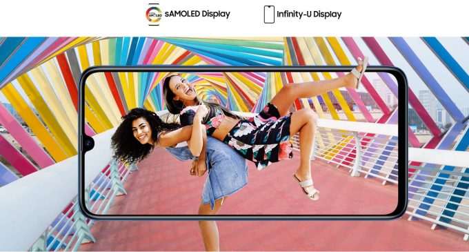 Điểm nhấn nổi bật trên chiếc Galaxy A70 chính là màn hình vô cực Infinity-U Display 6.7 inch thuộc loại lớn nhất của dòng smartphone Samsung Galaxy A, tràn viền về cả 4 cạnh tối ưu hóa trải nghiệm thị giác sống động và không gián đoạn cho người dùng. Tuy có màn hình to nhưng máy lại cho cảm giác cầm nắm vừa vặn và chắc tay nhờ vào các cạnh viền siêu mỏng và tỉ lệ hiển thị lên đến đến 93,4% mặt trước máy. Với tỉ lệ màn hình chuẩn điện ảnh 20:9 cùng với công nghệ tấm nền cao cấp Super AMOLED chuẩn Full HD+, Galaxy A70 cho người dùng đắm chìm trong những giây phút giải trí điện ảnh, chơi game đỉnh cao.