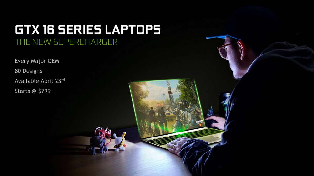 Đáng chú ý nhất trong đợt ra mắt GPU GTX 16 series lần thứ 2 này là các GPU cho laptop. Đó là hai GPU GTX 1660 Ti và GTX 1650. Hiện có 80 thiết kế laptop của các thương hiệu Acer, ASUS, Dell (với Alienware), Gigabyte, HP, Lenovo (với MSI), Samsung,… được trang bị các GPU GTX 16 series này, với mức giá khởi điểm từ khoảng 800 USD.