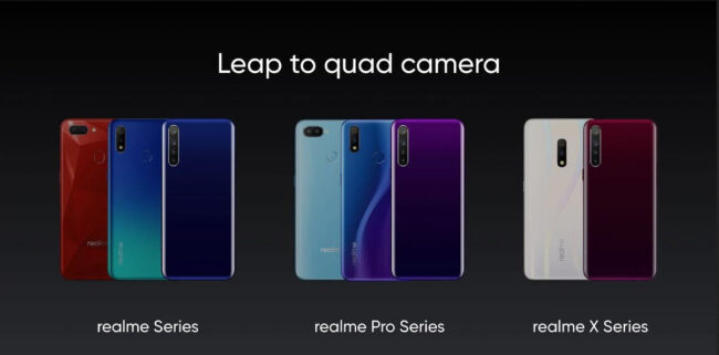 Realme, một thương hiệu smartphone có mức tăng trưởng nhanh của OPPO, tại sự kiện Leap to Quad Camera ở New Delhi (Ấn Độ) ngày 8-8-2019 đã giới thiệu công nghệ Quad-camera 64MP trên smartphone. Mẫu smartphone đầu tiên của Realme được trang bị cụm 4 camera sau này sẽ được ra mắt trong thời gian tới. Nó sẽ thuộc dòng Realme X series và là smartphone đầu tiên của Realme có độ phân giải camera lớn tới 64MP và cũng là smartphone đầu tiên của Realme có số camera sau nhiều hơn 2 chiếc (dual-camera). Đó là lý do Realme gọi sự kiện này là Leap to Quad Camera, nhảy một cái lên tới 4 camera, bỏ qua Triple-camera với 3 camera.