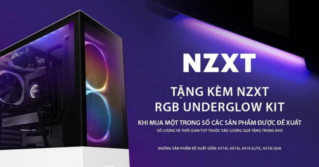 - Mua case H510 Elite / H510i và H210i, khách hàng được tặng kèm kit NZXT Underglow 200mm.