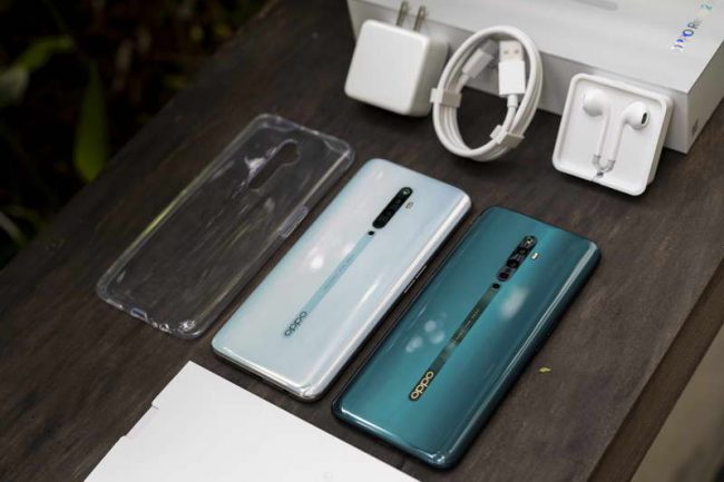 Reno2 F có các phiên bản màu: Xanh Biển Hồ và Trắng Hoa Tuyết.