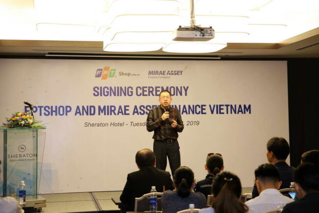 “Với phương châm “Luôn đặt lợi ích của khách hàng lên hàng đầu”, Mirae Asset Finance Vietnam không ngừng nỗ lực phát triển thông qua việc đưa ra nhiều lựa chọn gói vay sản phẩm khác nhau để đáp ứng nhu cầu đa dạng của khách hàng. Chính vì vậy, việc đẩy mạnh hợp tác với các đối tác tin cậy là một trong những chiến lược mà công ty lựa chọn nhằm đa dạng hóa sản phẩm, tạo điều kiện thuận tiện tối đa cho khách hàng. Trong hợp tác với FPT Shop, với các gói hỗ trợ khoản vay đa dạng, mức lãi suất cạnh tranh cùng thủ tục đơn giản, Mirae Asset Finance Vietnam hoàn toàn tự tin để trở thành lựa chọn cho các khách hàng. Ở giai đoạn đầu của hợp tác, chúng tôi đưa ra gói hỗ trợ khoản vay cho những khách hàng có nhu cầu mua điện thoại Samsung tại FPT Shop. Ở giai đoạn tiếp theo, gói sản phẩm này sẽ được áp dụng cho các sản phẩm đến từ nhiều thương hiệu khác nhau tại FPT Shop. Chúng tôi tin rằng, những nỗ lực này của Mirae Asset Finance Vietnam sẽ góp phần không nhỏ trong việc đẩy lùi vấn nạn tín dụng đen, đem lại một môi trường tín dụng minh bạch cho người tiêu dùng.”
