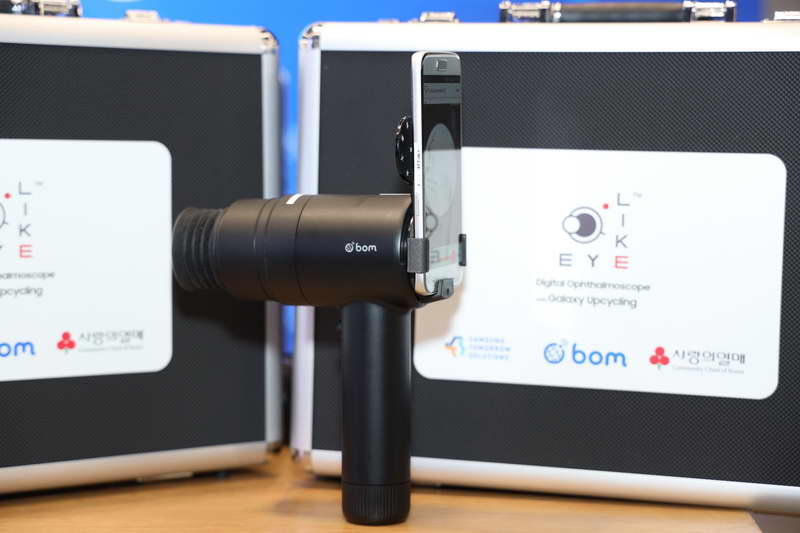 Cũng từ chương trình Galaxy Upcycling này, các chuyên gia của Samsung đã tìm cách tái sử dụng các thiết bị di động cao cấp của mình để trở thành một phần của máy chụp ảnh đáy mắt cầm tay thuộc nền tảng EYELIKE. Khi đó, Kính soi đáy mắt nâng cấp EYELIKE được kết nối với thiết bị Galaxy để chụp ảnh đáy mắt. Thuật toán trí tuệ nhân tạo AI phân tích và tự động chẩn đoán bệnh lý nhãn khoa từ hình ảnh đáy mắt chụp từ thiết bị và ứng dụng điện thoại thông minh ghi nhận thông tin dữ liệu bệnh nhân chuẩn xác khi mô tả kết quả chẩn đoán và phác đồ điều trị.