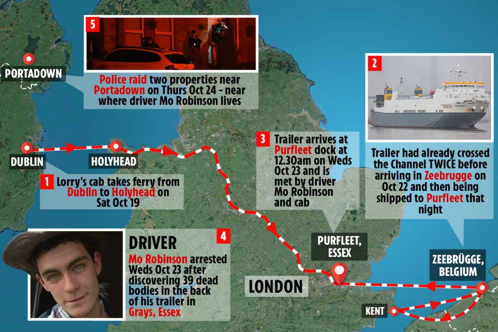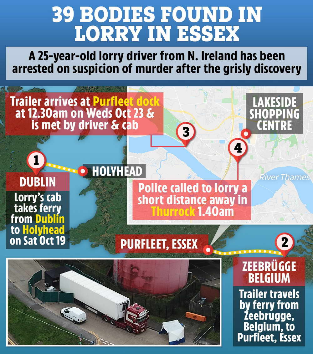 Chiếc xe container đông lạnh với 39 nạn nhân đông cứng được nhà chức trách Anh phát hiện sáng 23-10-2019 tại Hạt Essex.