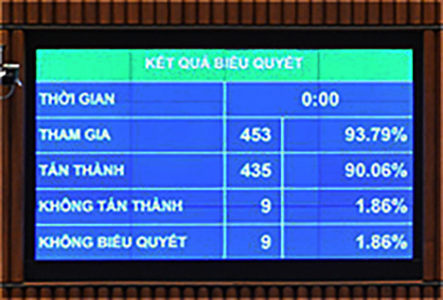 Kết quả Quốc hội Khóa XIV biểu quyết thông qua Bộ luật Lao động sửa đổi ngày 20-11-2019.