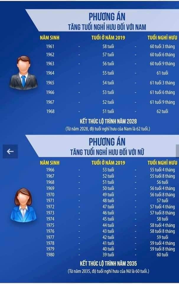 Như vậy, tới năm 2028, lao động nam mới bắt đầu có tuổi nghỉ hưu là 62 tuổi; và tới năm 2035, lao động nữ mới bắt đầu có tuổi nghỉ hưu là 60 tuổi.