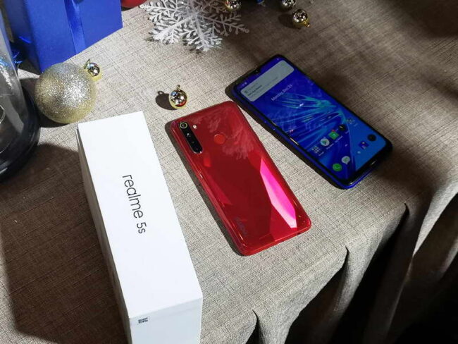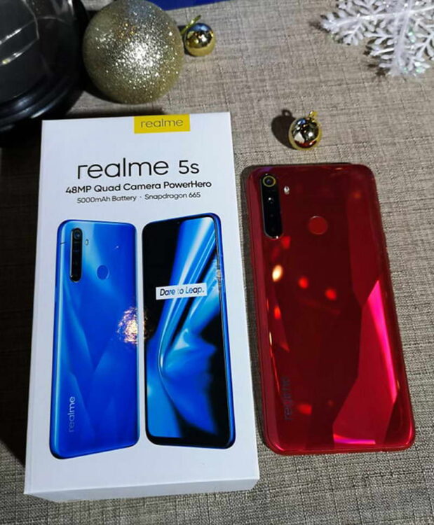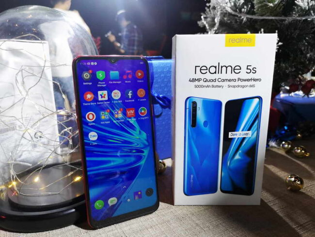 Realme 5s được Realme công bố toàn cầu tháng 11-2019, có thiết kế theo trend hiện nay của Realme với mặt lưng bóng bẩy phàn chiếu ánh sáng, màn hình 6.5 inch HD+ có notch. Camera trước 13MP. Camera sau Quad-camera với camera chính 48MP, camera siêu rộng 8MP, camera cận cảnh 2MP và camera lấy chiếu sâu 2MP. Chip Qualcomm SDM665 Snapdragon 665 (11 nm). Hệ điều hành ColorOS 6 dựa trên Android 9 Pie. Pin 5.000mAh, sạc 10W.