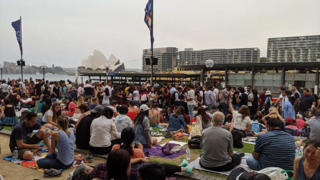 Nơi cả thế giới cùng hướng về đầu tiên mỗi năm mới là Cảng Sydney (Úc) – nơi lừng danh với nhà hát hình con sò. Tại đây mỗi giao thừa Năm mới đều có trình diễn pháo hoa thuộc loại lớn và đẹp nhất hành tinh. Năm nay, mém chút là màn bắn pháo hoa truyền thống ở Sydney bị hủy bỏ khi có hàng trăm ngàn người ký thỉnh nguyện thư yêu cầu chính phủ không tổ chức bắn pháo hoa mà dùng tiền đó chi cho lực lượng cứu hỏa vất vả chế ngự làn sóng thàm họa cháy rừng khủng khiếp ở Úc. Bạn Lê Nam, nguyên phóng viên báo Tuổi Trẻ và hiện làm ở mảng truyền thông cho Gojerk/GoViet, đang cùng gia đình có mặt tại cầu cảng Sydney chờ xem trình diễn pháo hoa, tường thuật: “Ngày cuối cùng của năm 2019. Có cảm giác mọi người ở Sydney đều dồn về Circular Quay để xem trình diễn kéo dài 5 tiếng tại khu Nhà hát con sò và cầu cảng trong đó nổi bật là màn bắn pháo hoa đón giao thừa. Đến 5:30pm chiều 30-12, chính quyền TP. Sydney mới quyết định sẽ không ngừng thông lệ bắn pháo hoa ngày cuối năm đã diễn ra liên tục 43 năm vì tình hình cháy rừng quá căng thẳng, đến nỗi ông Thủ tướng đi nghỉ phép còn bị dân biểu tình tận nhà và buộc phải bỏ chương trình mà quay về. Hơn 300.000 người đã ký tên kêu gọi ngưng bắn pháo hoa năm nay. Từ 8g sáng đã có nhóm người đi giữ chỗ đẹp.”