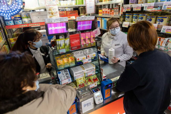 Người dân xếp hàng mua khẩu trang và nước rửa tay tại Hong Kong ngày 31-1-2020. (Ảnh: Jerome Favre/EPA, via Shutterstock/NYT/Internet).