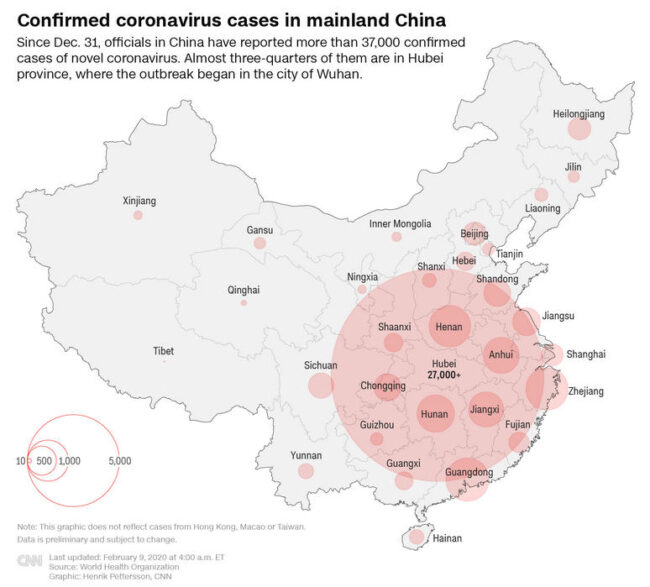 The bulk of China’s new cases and deaths are reported at about 22:00 GMT (5:00 PM ET) for Hubei, and at 00:00 GMT (7:00 PM ET).