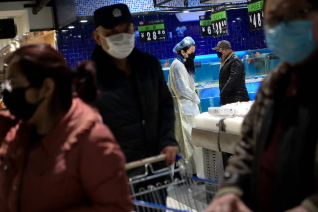 Khách hàng đều đeo khẩu trang trong một siêu thị ở Wuhan ngày 10-2-2020. (Ảnh: CHINATOPIX, via Associated Press/ NYT/Internet. Thanks.)