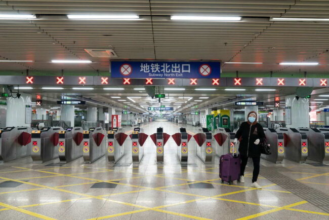 Một nhà ga xe điện ngầm vốn đông đúc ở Beijing vào ngày 10-2-2020 vẫn vắng ngắt cho dù có một số doanh nghiệp mở cửa hoạt động lại vào hôm ấy. (Ảnh: Giulia Marchi for The New York Times/ Internet. Thanks.)