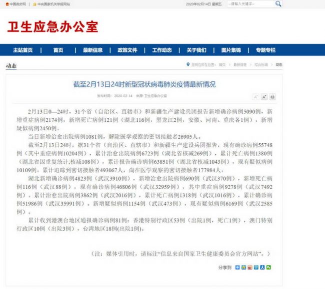 Sáng 13-2-2020 sau khi bị trễ hơn 2 tiếng đồng hồ so với thường ngày, Ủy ban Y tế Quốc gia (NHC) Trung Quốc đã gây chấn động thế giới với bản báo cáo hàng ngày có các con số kinh khủng.