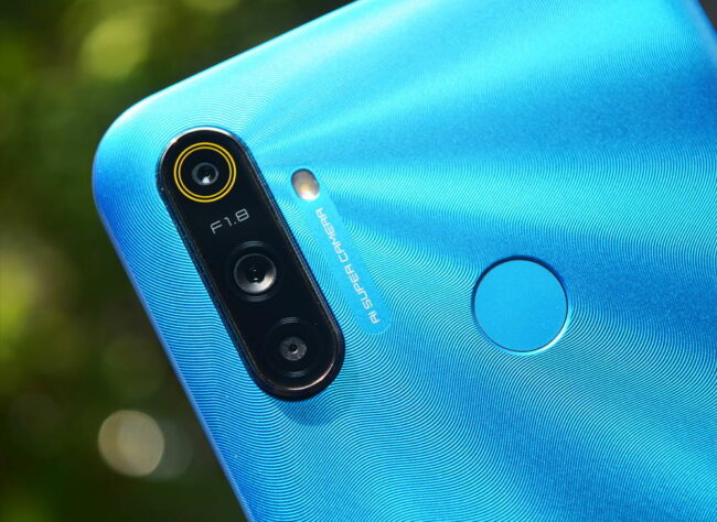 Thiết kế nguyên khối, lưng nhựa cong 3D, chống tràn nước. Màn hình IPS tràn viền 4 cạnh mini-drop 6.5 inch HD+ (720 x 1600 pixel) 20:9. Chip MediaTek Helio G70 (8 nhân 2GHz, 12nm). Camera sau triple: 12MP f/1.8 + 2MP macro + 2MP depth. Camera trước: 5MP f/2.4. Android 10, Realme UI 1.0. Pin 5.000mAh, sạc 10W. Mở khóa vân tay sau lưng.
