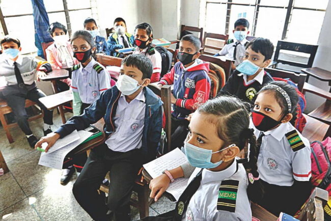 Học sinh trường Mascot Innovative School and College ở khu Ashkona của thủ đô Dhaka (Bangladesh). (Ảnh: Anisur Rahman/ The Daily Star/ Internet. Thanks.)
