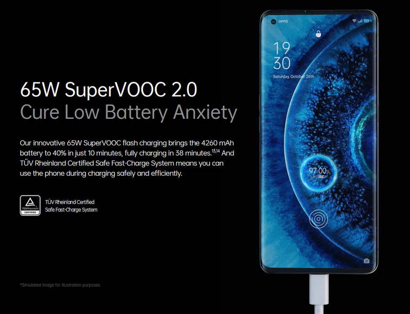 Về thời lượng pin, bộ đôi Find X2 và Find X2 Pro sở hữu viên pin với dung lượng lần lượt là 4200mAh và 4260mAh. Cả hai đều được tích hợp siêu sạc siêu nhanh SuperVOOC 2.0 65W. Đây là được công nhận là một trong những công nghệ sạc nhanh nhất và an toàn nhất trong ngành công nghiệp smartphone (đạt chứng nhận an toàn TÜV Rheinland Certified). SuperVOOC 2.0 có thể sạc đầy Find X2 Pro chỉ trong 38 phút.