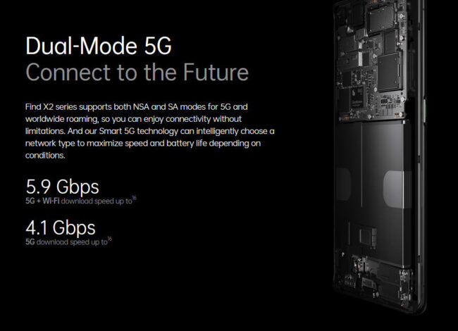 Là một flagship 5G, Find X2 series hỗ trợ chế độ 5G kép SA/NSA. Cả hai sản phẩm sử dụng ăngten vòng 360 độ, được thiết kế thông minh để bảo đảm tín hiệu di động luôn trong tình trạng được tối ưu.