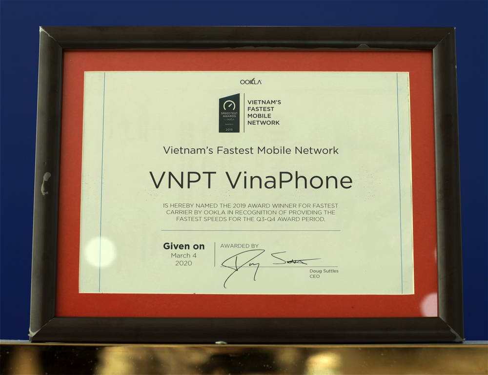 Ookla, đơn vị uy tín về đo kiểm tốc độ Internet quốc tế có trụ sở tại bang Washingron (Mỹ) ngày 4-3-2020 đã cấp chứng nhận Nhà mạng 3G/4G nhanh nhất Việt Nam cho VinaPhone. Đây là năm thứ 2 liên tiếp, VinaPhone nhận được danh hiệu này.