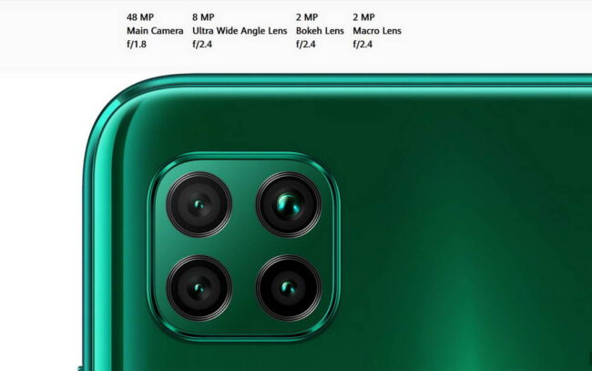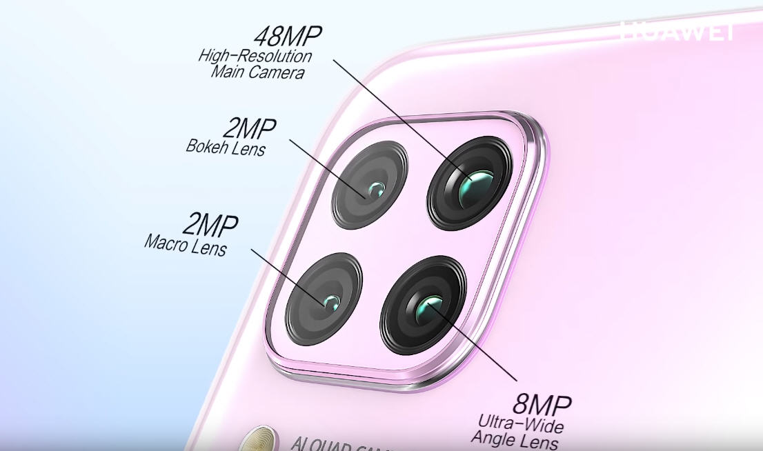Camera chính có độ phân giải 48MP hỗ trợ công nghệ bố cục đa khung hình mới nhất của Huawei, có khả năng tạo ra những màu sắc sống động bằng cách ghép nhiều ảnh được chụp liên tiếp với nhau. Ống kính góc siêu rộng 8MP đem đến góc nhìn rộng 120°, dễ dàng giúp người dùng thu được nhiều chi tiết hơn và đặc biệt lý tưởng cho ảnh phong cảnh, kiến trúc và ảnh nhóm. Ống kính macro có thể chụp các vật thể ở khoảng cách gần 4cm để bạn thỏa sức sáng tạo. Ống kính Bokeh được hỗ trợ AI để mô phỏng hiệu ứng xóa phông một cách tự nhiên, đưa bức ảnh chân dung vừa đẹp, vừa thật hơn.
