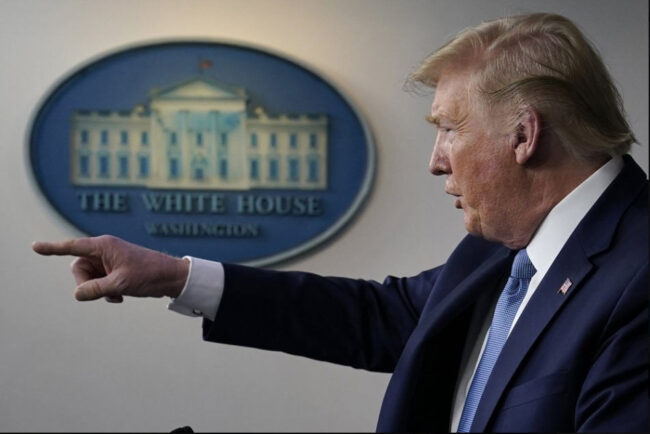 Tổng thống Donald Trump tại cuộc họp báo ngắn với lực lượng đặc nhiệm coronavirus (coronavirus task force) ở Nhà Trắng ngày 16-3-2020. (Ảnh: AP Photo/Evan Vucci/ Internet. Thanks.)