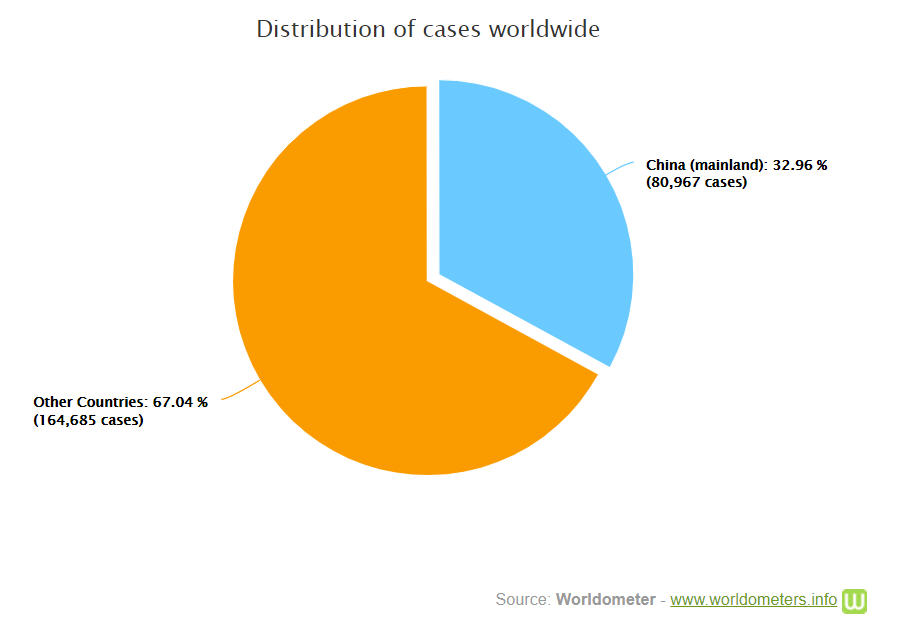 The coronavirus COVID-19 is affecting 179 countries and territories around the world and 1 international conveyance (the Diamond Princess cruise ship harbored in Yokohama, Japan). The day is reset after midnight GMT+0.