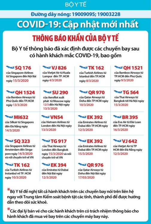– BN89: nữ, quốc tịch Việt Nam, 22 tuổi, ở Quận 7 (TP.HCM). Bệnh nhân từ New York, Boston (Hoa Kỳ) đến Nhật Bản và từ Nhật Bản lên chuyến bay của hãng hàng không ANA Nhật Bản số hiệu NH 831, số ghế 28C và về tới sân bay Tân Sơn Nhất khuya 17-3-2020. Được lấy mẫu xét nghiệm rạng sáng 18-3-2020.